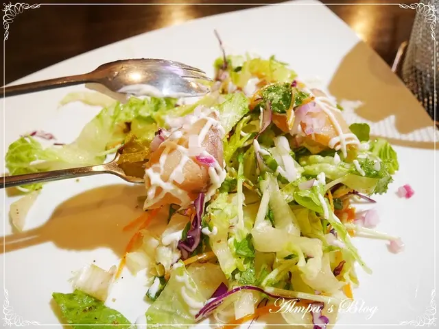 新鮮爽脆的生菜和不薄的燻鮭魚就這樣擺在眼前~吃起來不會太生、太腥,軟嫩中帶出鮮甜~