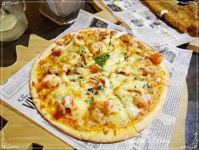 大量的蝦子、蛤蜊、透抽~鋪上滿滿的起司~每一口都邪惡的感覺呀!!!