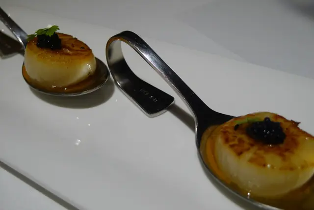 擺設挺漂亮的 盤中兩顆大干貝,撒了滿滿的魚子醬& 薄荷葉點綴