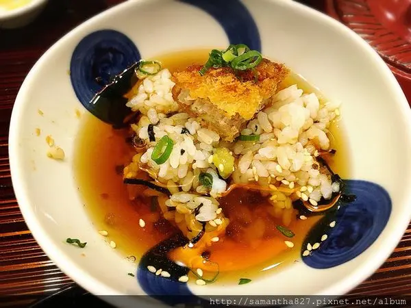 莎小姐後來把溫泉蛋也加進茶泡飯裡一起吃了