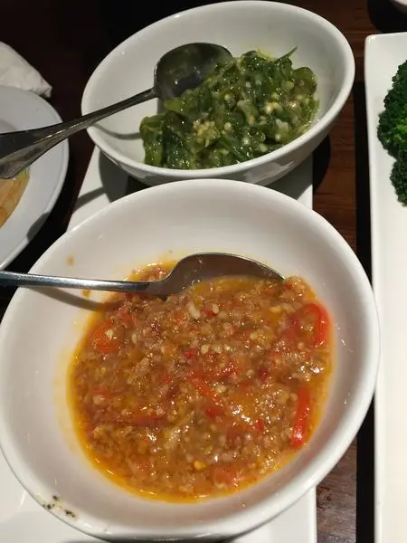 青醬:將青辣椒煮熟去皮,加入紅蔥頭、魚露等調味。
