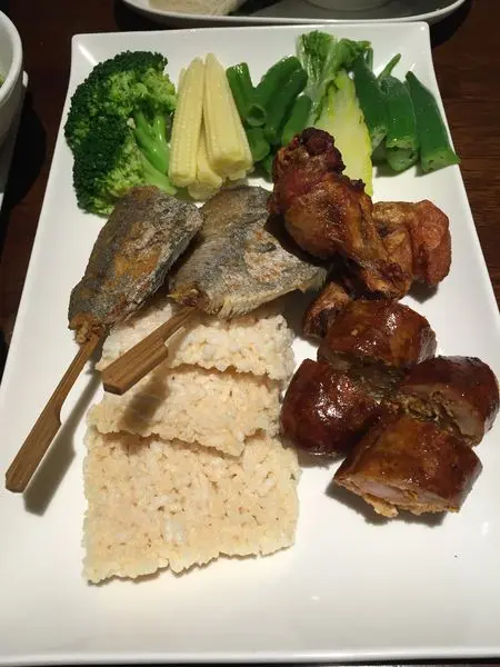 附餐的蔬菜都只有水煮過沾辣椒醬吃