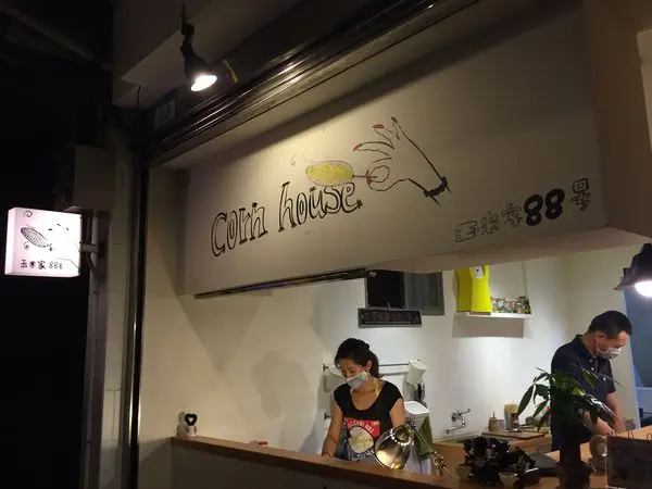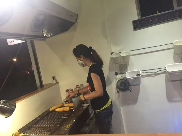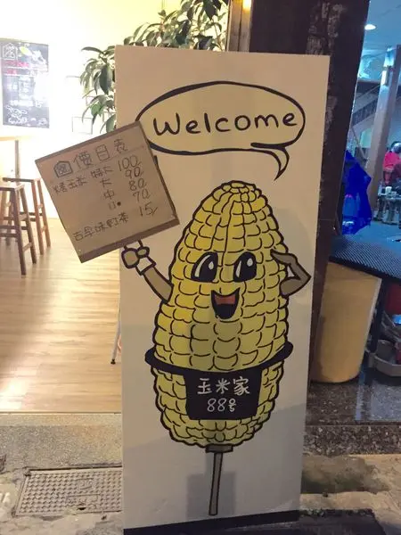 有店面、有位子、有特別設計的LOGO的烤玉米店