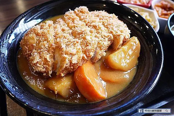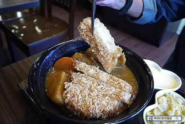 豬排是厚切的,口感紮實有彈性又不乾柴,外層的麵包粉好酥脆又不油膩,豬排有著咖哩味道,每一口都好好吃!