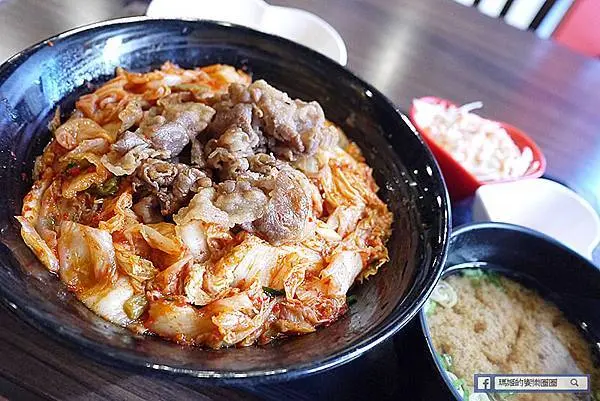 上餐的速度也很快,這對中午分秒必爭的上班族很重要!套餐組合包含的高麗菜絲和味噌湯是可以續的,心動小食區我們選了韓式泡菜和黃金泡菜來做搭配,兩種不同風味的泡菜都好吃,難分軒致!