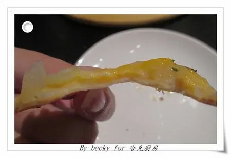 而餅皮則是很薄,吃起來很酥脆且還帶點鹹味。