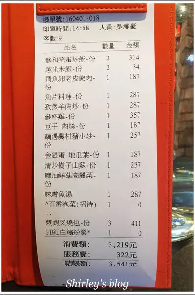 消費合計3541元/9人
