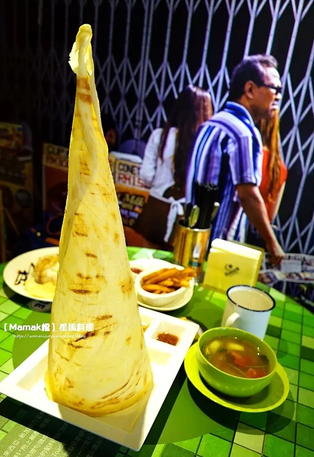 來Mamak檔絕對大推必點的,莫過於這像個高帽子的香酥塔餅。