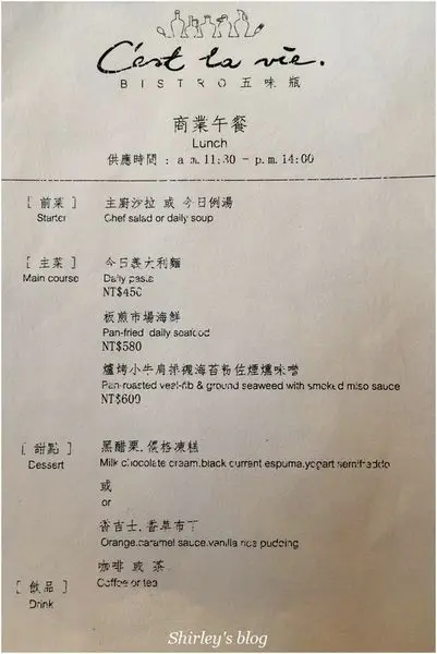 主菜有三種~義大利麵450元.海鮮580元.牛小排600元