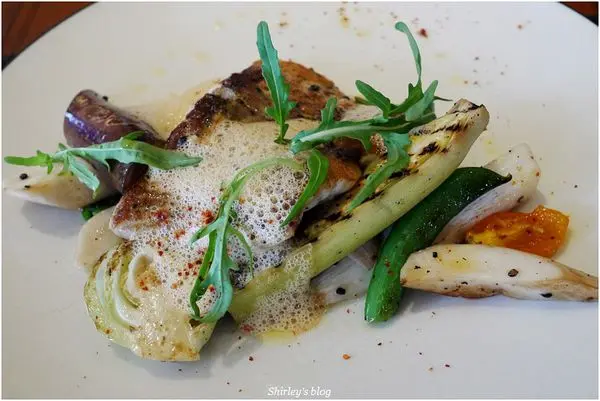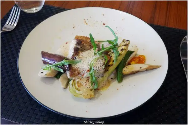 當日魚種是鱸魚,板煎外皮酥脆,魚肉細緻柔嫩,非常好吃