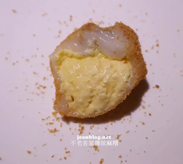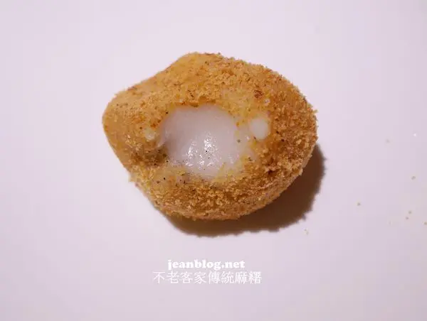 而且最外層麻糬皮的花生粉已經潮濕,咬起來的口感也不似剛買到的輕柔細緻