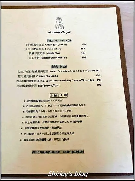 捷運行天宮站 ‧ January Couple(午茶/咖啡/甜點) Shirley幸福部落Level 52022-05-1816 views Follow 與姐妹淘午餐約會後 我和葉子不趕時間就近續午茶行天宮站附近公寓二樓的咖啡館木質地板格外溫馨 當日蛋糕書寫於黑板上溫馨小沙發四人桌每一座位各有不同風格 小角落的巧思 MENU 蜂蜜香柚汽泡140元百香香橙汽泡140元布丁90元奶油伯爵戚風蛋糕170元 飲品點綴上小綠意 視覺提升 飲品及甜點都令人讚賞 女生總有第二個胃可以享受美好午茶時光 The above review is the personal opinion of a user which does not represent OpenRice's point of view.LikeShare捷運行天宮站 ‧ January Couple(午茶/咖啡/甜點) January Couple https://s.openrice.com/cHKTm02PvO200Report Post Ratings4Taste4Decor4Service3Hygiene4ValueDining MethodDine In