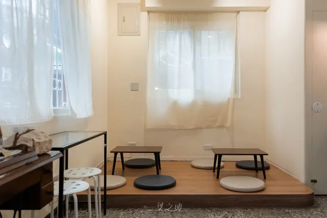 有了空間,自然可以實現更多想法,例如店門口的牆面漆上了柔軟的藍色、還有著漂亮的窗花;內用的位置變大了,有採光充足的窗邊、有吧檯座位、甚至還有小小的、席地而坐的茶席區塊,一切都更加豐富了。