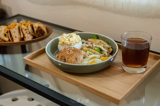 可以作為早餐、更可以作為咖啡廳的午後輕食,沐沐家將本來店裡的招牌日式飯糰升級成套餐,以兩種招牌口味「雞肉親子本丸」和「味噌辣鮭魚本丸」為主,一旁增加了胡麻醬烤蔬菜和水煮蛋,整體更加豐富滿足,也難怪命名為「營養均衡本丸套餐」了。