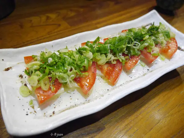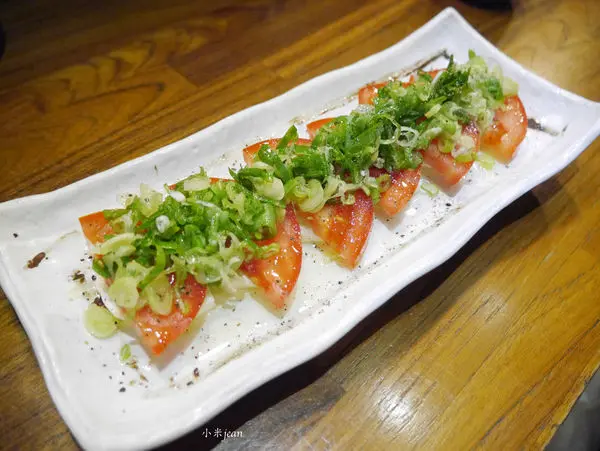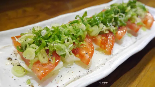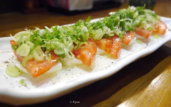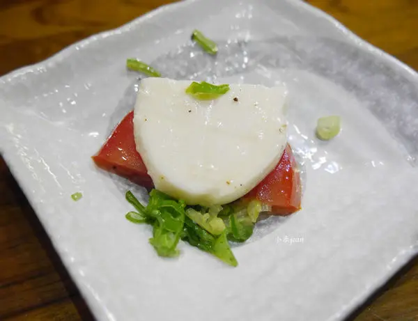切片番茄以簡單香料調味佐以一定厚度的乳酪與青蔥