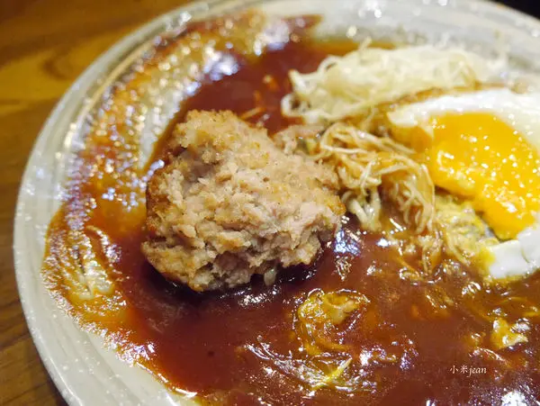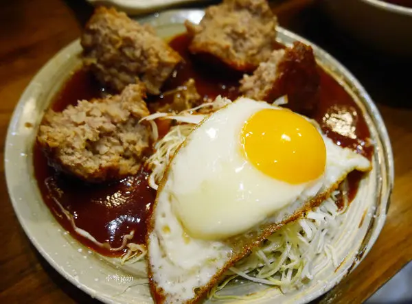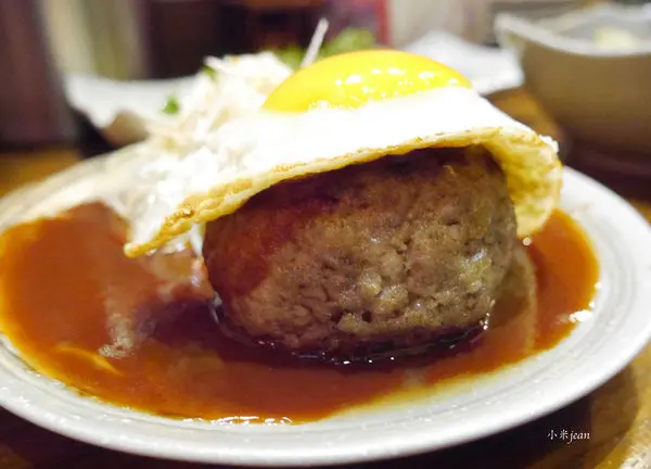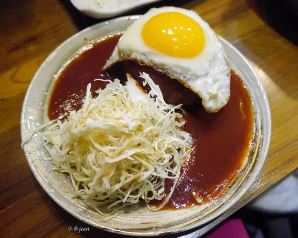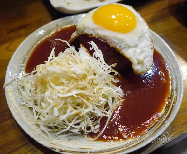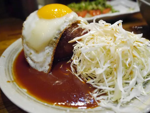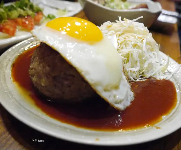 渾圓的手作漢堡肉匿藏在太陽蛋下,為避免只吃肉而感到膩口,附上一坨高麗菜絲