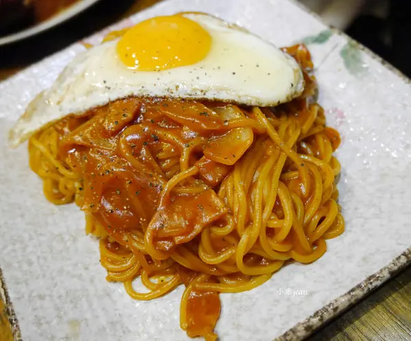 盤內的醬汁以番茄醬為基底調和著醬油,對我來說有點味道過重(太鹹~)