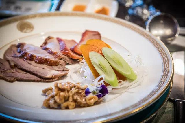 梅花拼盤(中華民國51年蔣中正總統梅花宴):包含火焰叉燒、秘汁牛腱、粵式燒鴨、烏魚子、琥珀核桃,梅花是中華民國意象及精神的代表,五片花瓣意味著五福臨門、花開富貴,作為國宴迎賓的前菜恰如其份