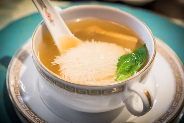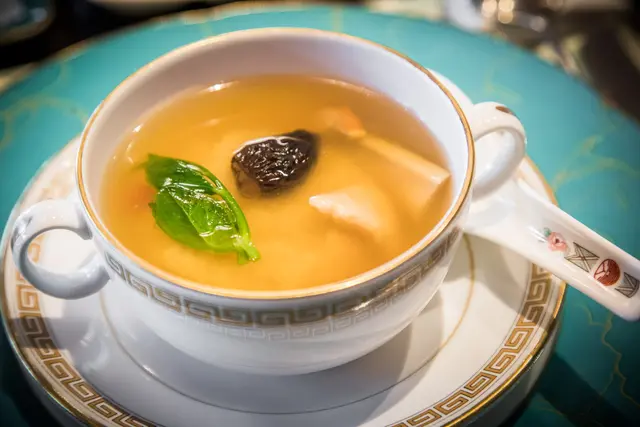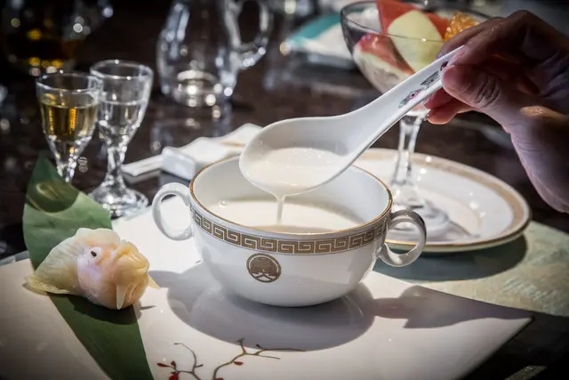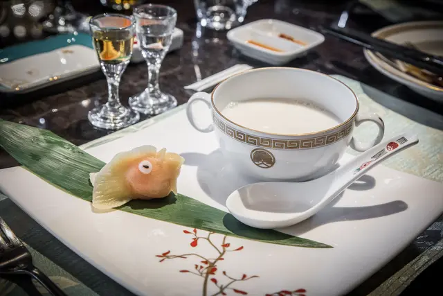 使用南杏、北杏調和,溫潤滋養,香氣濃郁,搭配師傅手工捏製栩栩如生的金魚餃,同樣也是手工藝的極致展現,超可愛的金魚還真讓人捨不得吃呢