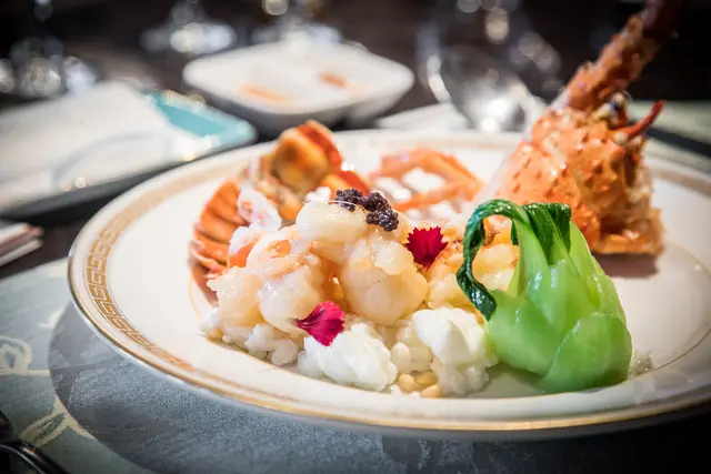 新鮮碩大肥美龍蝦口感鮮甜,肉質富有彈性,蝦肉再加上鮮香魚子醬點綴,增加鮮味,極富口感層次,搭配粵式傳統炒鮮奶手法,濃郁豐厚