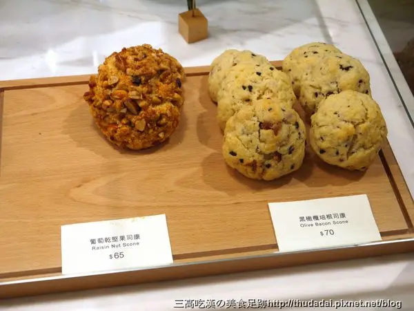 <葡萄乾堅果scone、黑橄欖培根scone>