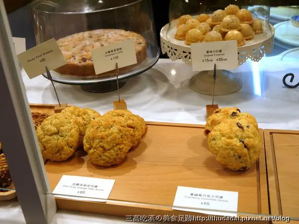 <前:伯爵茶桔皮scone、蔓越莓巧克力scone,後:水嫩莓果蛋糕、原味小叮噹(費南雪)>