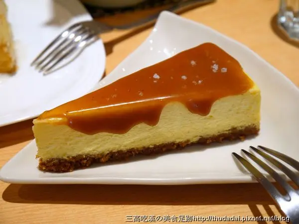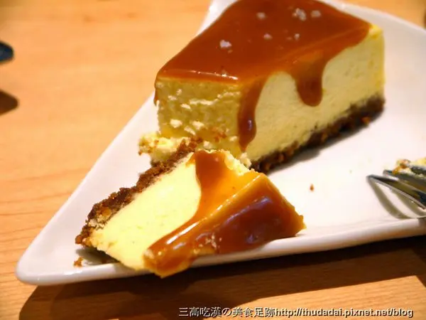 起司蛋糕選了海鹽焦糖口味,焦糖醬是製成太妃糖醬的味道,