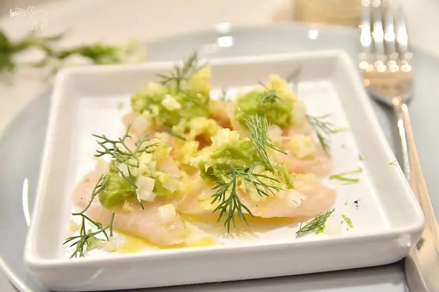 吃起來新鮮、無腥味、柔軟,新鮮的芥末味很香,芥末和萊姆、時蘿能將味到提點卻不會蓋住食材原味,整體是清爽不膩口的菜色類型。