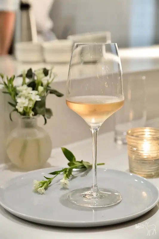 另一款同為侍酒師推薦的粉紅酒,他說此款酒飲搭配任何餐點,又或是說從前菜吃到主食、甜點都很適合,此款同樣很清爽,較沒上款甜,滋味也很不錯,都是搭配餐點不會搶味的好佐餐酒。