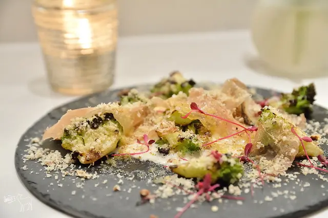 第一次吃到羽衣甘藍菜時,是在RAW,當時對這菜留下了好印象。ACHOI當代料理餐廳這裡的羽衣甘藍菜,吃起來焦香味重,下方的自製瑞可塔起士增添滑潤口感與濕潤度,麵包香脆。