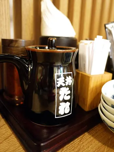 這個黑字小瓶子裡裝的是天丼專用醬汁