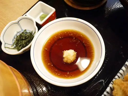 用來調味的特製沾醬混合蘿蔔泥拿來沾香酥的天婦羅最對味