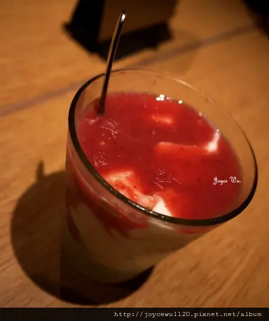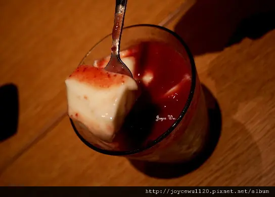杏仁豆腐本身帶的杏仁味不重 又加了酸甜的草莓醬 幾乎整個味道都被蓋過了