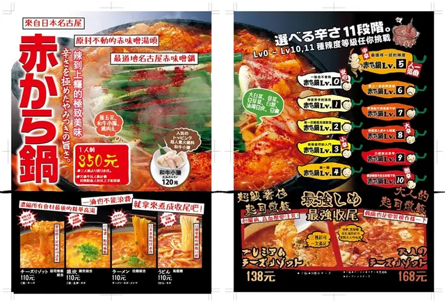 初訪朋友一定要品嚐店內招牌紅味噌鍋,湯頭分成10種辣度挑戰!