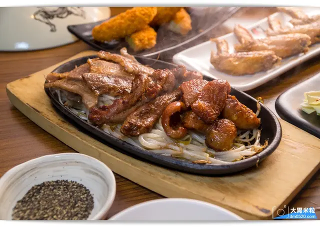 熱騰騰的鐵板一上桌立刻聞到滋滋作響焦香味,