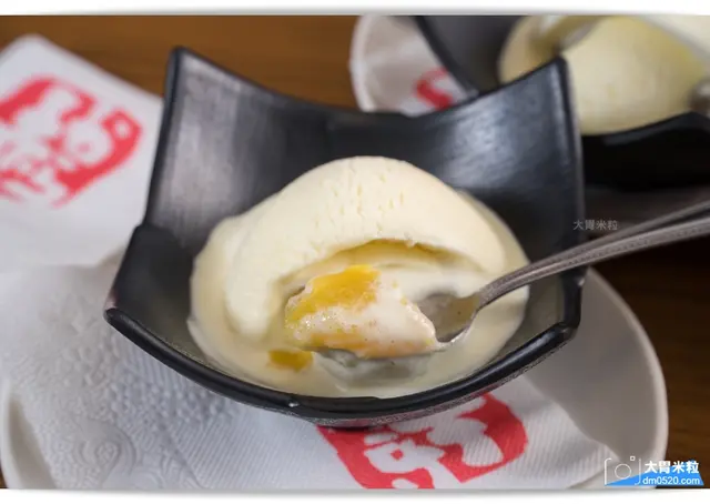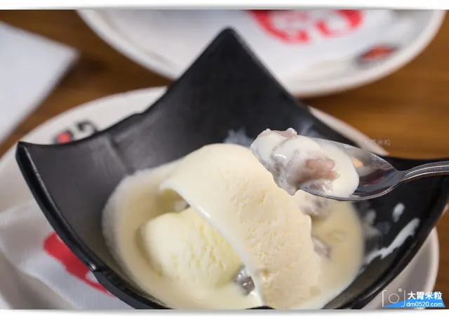 日本明治冰淇淋搭配店家自製的熱地瓜泥與芋頭泥,享受冰火雙重奏!