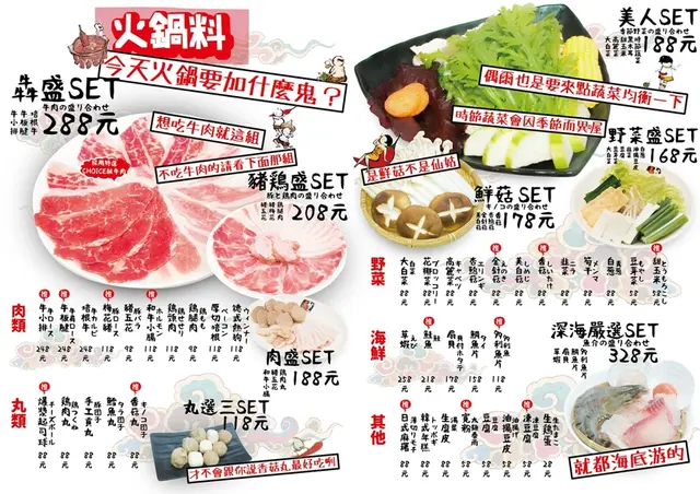 邊吃邊涮雞腿肉、牛豬肉片!