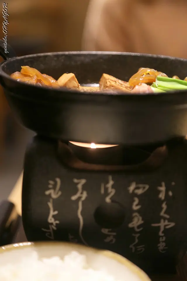 燭火保溫壽喜燒,配著飯吃別有小火鍋的樂趣