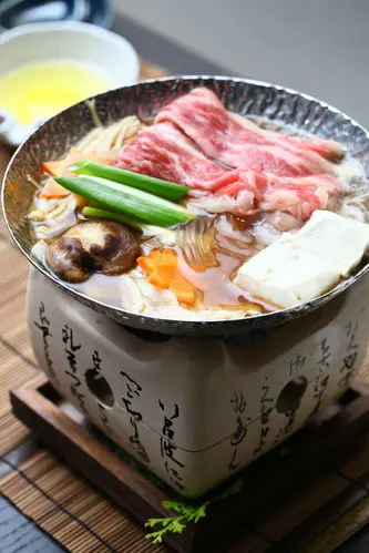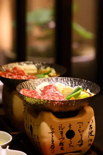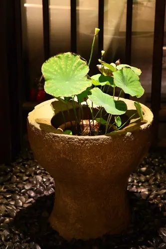 強肴可以選石板牛排或牛肉壽喜燒,我們選了壽喜燒,肉是用美國安格斯牛小排,但是其實感覺不太像壽喜燒,醬汁較淡,更像小火鍋~~我喜歡這張照片是因為後方剛好有一罈荷花,很有意境~~