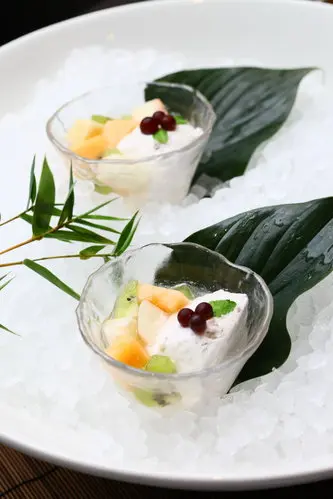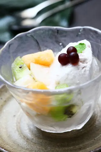 甘物是芋頭慕斯,上桌時居然放在一大盆冰裡~~讓我想起了無老鍋的無老肉........