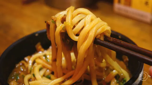 烏龍麵裏面除了豬肉片之外還有蒟蒻、蘿蔔等配料
