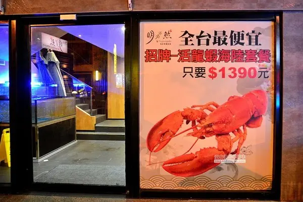 大門口的這個招牌吸引了我的注意,1390元就以可吃到活龍蝦! 很吸引人~