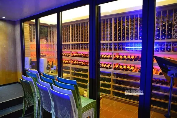 走進大門樓梯旁是龍蝦的水族箱,看到裡面有好幾隻龍蝦在裡面爬來爬去,活力十足!右手邊則是紅酒保存室,裡面的紅酒還真不少哪!