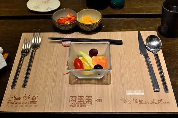 首先上桌的是水果和套餐小菜