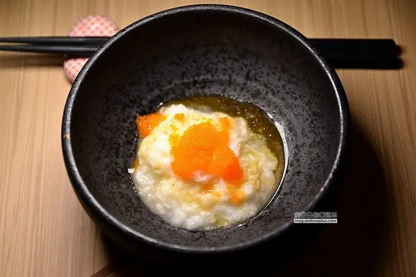 這是店家的招牌項目之一,炒飯不用加油,取代的是師傅不停的翻炒!把飯炒的粒粒分明,加入了飛魚卵、櫻花蝦一起下去拌炒,讓米飯吸收了櫻花香的香味,每一顆飯粒咬起來都是飽滿的香氣,飛魚卵則有點鹹味,咬起來是卡滋卡滋的口感,讓整晚飯不論是在香氣、味道和口感上都變得很有層次