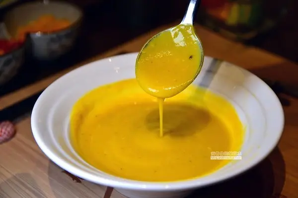 新鮮的南瓜下去打的南瓜濃湯,喝起來濃郁但是卻很清爽,甘甜卻不膩