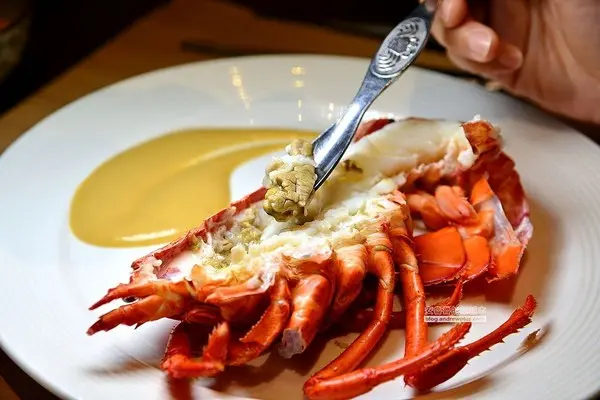 吃波士頓龍蝦搭配的是香甜蜂蜜芥末醬,別以為吃完了龍蝦身體、大螯的肉,嗑了蝦腦就結束了,師傅還教我們如何把一隻波士頓龍蝦吃個乾淨!餐廳所提供的工具,可以把龍蝦腳的肉輕鬆的取出來,吃得乾乾淨淨!