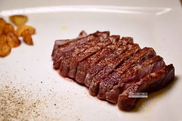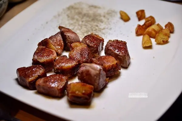 外層帶一點點焦脆,內層的肉質則是柔軟多汁,我選擇的是5分熟的熟度搭配一旁的煎烤蒜頭吃起來剛剛好! 店家的老饕牛排更是一絕,此外店家也有提供和牛的選項,喜歡吃牛排的美食家們可以點來吃看看!