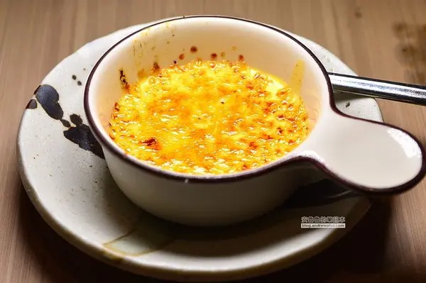甜點是烤布蕾,也是今天最後一道餐點了,沒想到和師傅邊聊邊吃,這一頓飯也吃了三個小時了!最後一道的甜甜蜜蜜是幸福的結尾!吃了這麼多美味,晚上一定可以睡個好覺