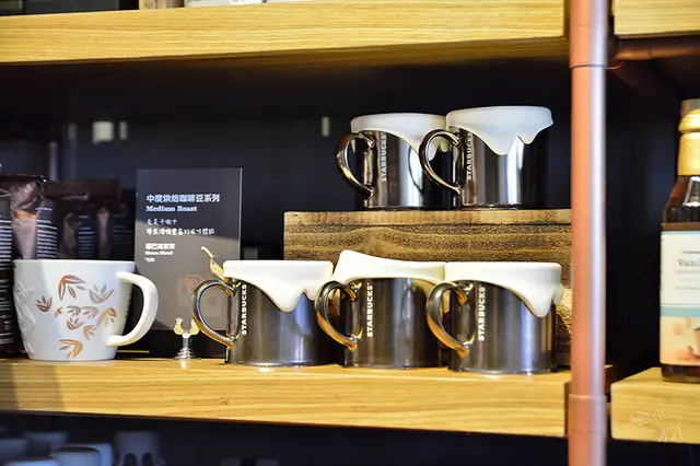 星巴克龍門新概念店這次也推出許多外表漂亮,但價錢很精品的咖啡器具,像是有水鑽的那款(璀璨水晶典藏紀念杯 12 oz)要$1400元。
